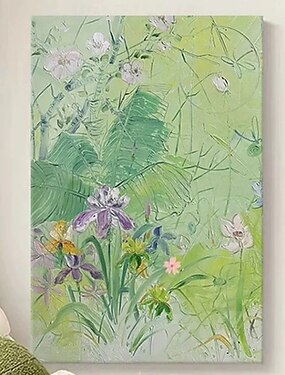 Pintura a óleo feita à mão em tela, arte de parede, decoração abstrata estilo wabi-sabi, plantas verdes frescas e claras, paisagem para decoração de casa, pintura enrolada sem moldura e sem esticar