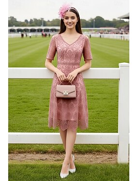 Vestido de festa de comprimento de chá em linha A vestido de coquetel vestido de convidada de casamento vestido para mãe da noiva manga curta decote em V elegante luxuoso formal misto de algodão com