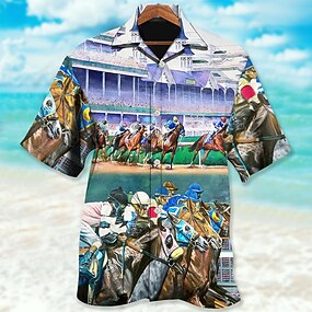 Derby de Kentucky Homens Cavalo Camisa Social Camisa havaiana camisa de botão Manga Curta Tropical Moda Havaiana Casual Havaiana Feriado Verão Primavera Aberto para a Lateral Imprimir Botão para