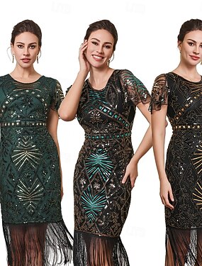 Loucos anos 20 Anos 20 Vestido Coquetel Xales estilo melindrosa Normal O Grande Gatsby charleston Convidado do casamento Paetês Geométrica Linha A Fantasia Mulheres Natal Carnaval Ano Novo Baile de