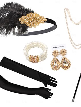Loucos anos 20 Anos 20 Retro Vintage Conjunto de acessórios Xales estilo melindrosa O Grande Gatsby Menina melindrosa charleston Convidado do casamento Paetês Fantasia Mulheres Dia Das Bruxas