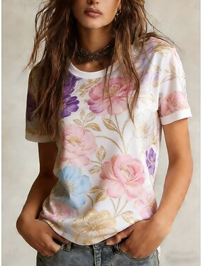 Mulheres Camiseta T-shirt Imprimir Floral Gráfico à moda Clássico Casual Manga Curta Gola Redonda Tops regulares Diário Esportes Para Noite Rosa Verão Primavera