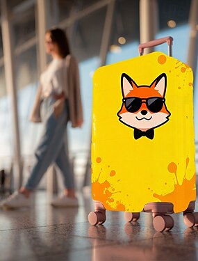Capa protetora elástica para mala de viagem com estampa de raposa.