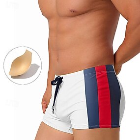 Homens Shorts de Natação Calção Justo de Natação Riscas Retalhos Com Cordão Perna curta Secagem Rápida Leve Esticar Roupa de Banho Calças Surfe Esportes Aquáticos Natação Verão