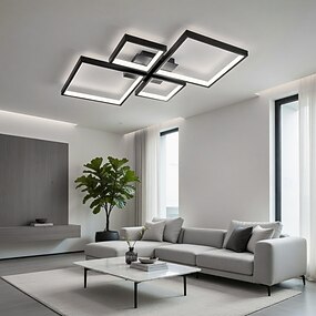 Luminária de teto LED moderna e dimerizável com controle remoto, 4 lâmpadas, em alumínio, para ambientes internos, ideal para sala de estar, quarto, sala de jantar, escritório e cozinha. 110-240V