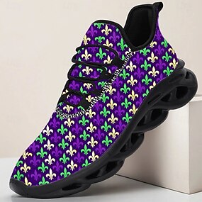 Tênis de Carnaval Masculino em Púrpura com Fleur-de-Lis – Design Arrojado e Colorido com Parte Superior de Malha Respirável Ideal para Mardi Gras Paradas de Carnaval e Festas Festivas