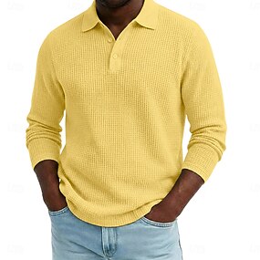 Homens Camisas Polo Waffle Textura Casual Rua Lapela Manga Longa Básico Moderno Tecido Textura Botões Puro Primavera Outono Todas as Estações Normal Azul Preto Branco Amarelo Vinho Cinzento Camisas