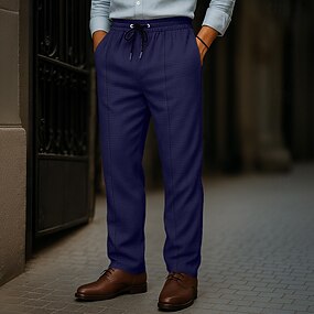 Homens Calças de linho Calças Calça verão Calças de praia Com Cordão Cintura elástica Perna reta Tecido Conforto Respirável Comprimento total Ao ar livre Feriado Praia Férias Moda Preto Branco