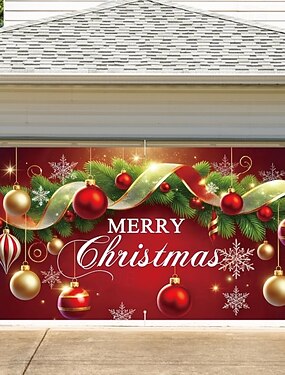 Capa para porta de garagem externa de natal, bolas de enfeite de natal, grande tapeçaria de natal, decoração de parede para festa, porta de garagem externa, decoração de festa de natal para casa