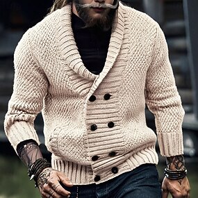 Homens Camisas Polo Waffle Pólo Casual Formal Colarinho com faixas Manga Longa Moda Côr Sólida Textura Botões Puro Outono & inverno Outono Primavera & Outono Normal Preto Verde Claro Azul Claro Azul