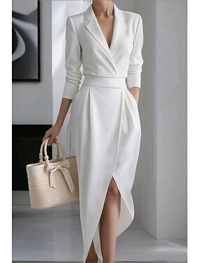 Mulheres Vestido midi vestido de cetim Vestido de festa Vestido da bainha Vestido Envelope Elegante Moderno Festa de Noite Festa Ocasião Especial Normal Tecido Manga Longa Decote V Branco Rosa Vinho