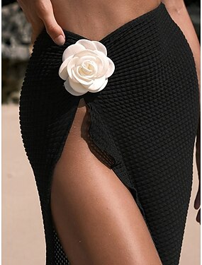 Mulheres Roupa de Banho Cobertura Shorts de natação Enrole roupa de banho Frufru Sensual Férias Tecido Cor imaculada Sem Manga Fatos de banho