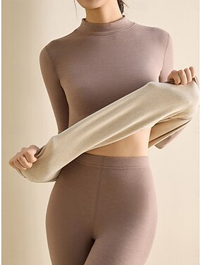 Mulheres Roupa interior térmica Conjunto de Pijama Casual Conforto Cor imaculada Cintura elástica Calça Casa Diário Manga Longa Pescoço Preto Rosa Castanho Claro Verde Cáqui Primavera Outono Inverno