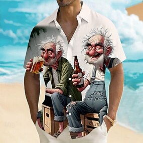 Homens Camisa de linho camisa de verão Roupa de Praia camisa de botão Tecido Férias Curise Preto Branco Verde Claro Rosa Manga Curta Aberto para a Lateral Verão Roupa
