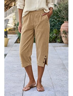 Mulheres Calças Capri Calças Calças de Veludo Calça verão Férias Moda Casual Diário Comprimento da panturrilha Cintura Alta Côr Sólida Tecido Bolsos Cintura elástica Conforto Macio Respirável Sem