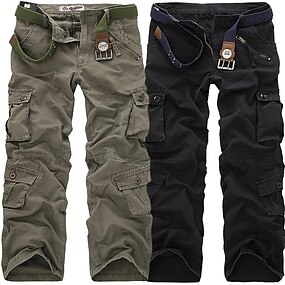 Homens Calças Cargo Calças Calças de trabalho Botões Bolso multi Tecido Vestível Ao ar livre Diário Acampar e Caminhar Moda Clássico Preto Verde Tropa