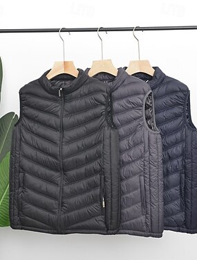 Homens Colete puffer Colete Gilet Férias Diário Encontro Moda Casual Inverno Bolsos Poliéster Manter Quente Confortável Côr Sólida Zíper Colarinho Chinês Normal Preto Azul Marinha Cinzento Colete