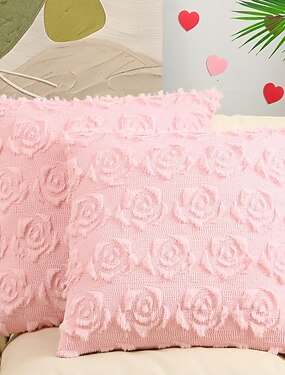Capa de almofada floral rosa com estampa plana 2D, sem enchimento, luxuosa, para sofá, cabeceira, escritório, almofada decorativa de cor sólida para encosto, sala de estar e quarto.