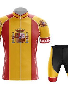 Homens Camisa de ciclismo com shorts Manga Curta Ciclismo de Montanha Ciclismo de Estrada Verão Amarelo Espanha Moto Tapete 3D Secagem Rápida Bolso Traseiro Pavio Humido Respirável Elastano Esportes