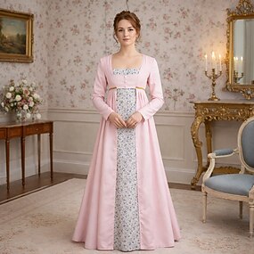 Renascentista século 19 Período da Regência Vestidos Manga Comprida Princesa Senhora Floral Duas Peças Fantasia Mulheres Real Dia Das Bruxas Carnaval Baile de Máscaras feira renascentista Festa