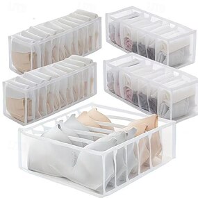 Conjunto de 5 caixas organizadoras dobráveis para roupas íntimas - divisórias de nylon de vários tamanhos para gavetas, ideais para roupas íntimas, meias e gravatas.