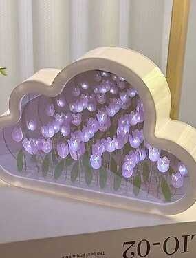 Luminária noturna em formato de tulipa com espelho e luzes em formato de nuvem, faça você mesmo, luminária de mesa decorativa com flores artificiais, decoração para sala de estar, presente para