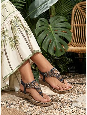sandálias rasteiras femininas com detalhes florais e boêmios – sandálias gladiadoras estilo étnico para passeios na praia e férias de verão