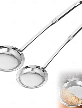 Conjunto de 2 coadores de malha fina em aço inoxidável para óleo de cozinha, escumadeira, filtro de gordura e espuma, utensílios de cozinha para peneirar alimentos.