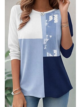 Mulheres Camisa Waffle Camisa casual Tops de verão Gráfico Bloco de cor Abstrato Elegante Férias Vintage Manga Longa Aberto para a Lateral Tops longos Diário Ao ar livre Streetwear Branco e Azul