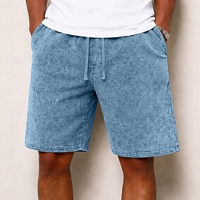 Homens Calção Shorts de verão 100% Algodão Shorts casuais Shorts com lavagem ácida Bolsos Cintura elástica Puro Cor Única Lavado Conforto Respirável Comprimento do joelho Casual Ao ar livre Praia
