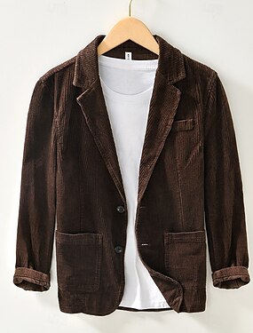 Homens Jaqueta de Veludo Colar de entalhe Moda Retro Cor Sólida Linha Blazer Marron Moderno Três botões de peito único