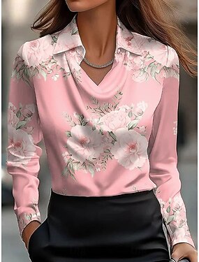 Camisa Feminina Blusas Elegantes Formais Camisa de Trabalho Gráfica Floral Elegante Estilosa Casual Manga Longa Gola Cowl Blusas Regulares Trabalho Festa Noite Vestido Diário Franzido Draped Amarelo