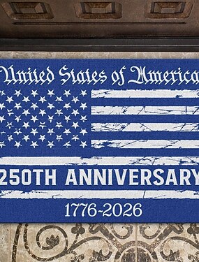 Tapete de entrada comemorativo do 250º aniversário dos Estados Unidos (1776-2026), tapete patriótico durável com design da bandeira americana para porta de entrada da casa. Semicentenário dos Estados