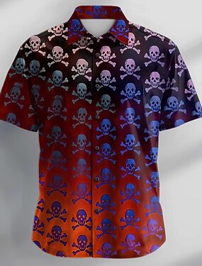 Camisa Masculina de Fantasia Caveira Camisa de Botão Manga Curta Casual Férias Diário Verão Primavera Com Colarinho Camisas de Botão Estampagem 3D Vermelha