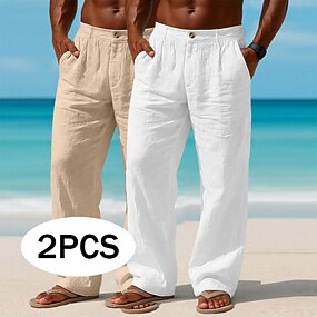 Homens Calças de linho Calça verão Com Cordão Cintura elástica Perna reta Tecido Conforto Respirável Comprimento total Casual Diário Praia Férias Moda Azul Preto Sem Elasticidade