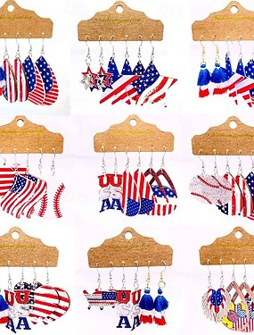 Brincos Patrióticos da Bandeira Americana Femininos dos Estados Unidos 250º Aniversário - Brincos Vermelhos Brancos e Azuis Múltiplos Looks para Mulheres Perfeito para o 4 de Julho e Feriados