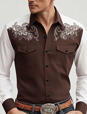 Homens Estampado Cashemere Estampa floral Étnico Camisa Social camisa ocidental Camisa de caubói Manga Longa Vintage retrô Casual Ao ar livre Roupa de Trabalho Primavera Outono Aberto para a Lateral