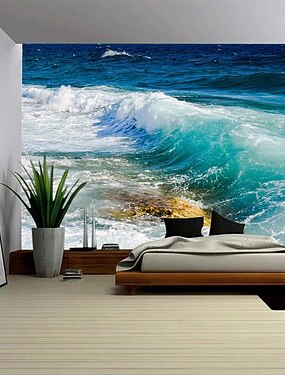 Tapeçaria Paisagem Oceano Onda de Parede Grande Tapeçaria Mural Decoração Fotográfica Fundo Cobertor Cortina Casa Quarto Sala de Estar Decoração