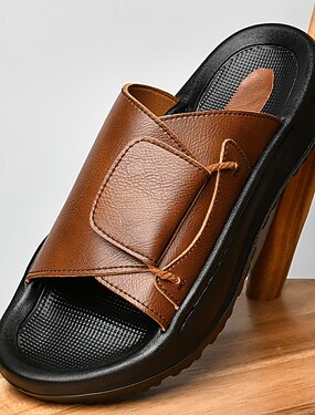 Homens Sandálias Caminhada Casual Pele PU Confortável Antiderrapante Respirável Com Cadarço Rosa+Preto Branco+Preto Vermelho Escuro Verão Primavera Outono