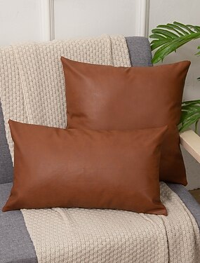Capa de almofada decorativa impermeável e resistente a manchas em couro PU para uso externo, ideal para pátio, jardim, varanda, sofá, estilo casa de campo.