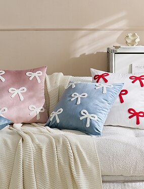 Capa de almofada de veludo para o Dia dos Namorados, capa de almofada com laço fofo para sofá, capa de almofada decorativa estilo ins, detalhe macio e aveludado para decoração de sala de estar e