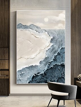 Pintura a óleo artesanal em tela decoração de arte de parede original oceano pintura de paisagem abstrata pintura de paisagem floral para decoração de casa com moldura esticada/sem pintura de moldura
