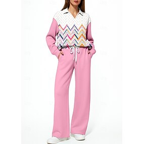 Mulheres Moletom Agasalho de 2 peças Conjuntos de moletom Com Cordão Bolsos Geométrica Conjunto de roupa atlética Conjuntos Outono Inverno Rosa claro Verde Claro Vocação Exterior Viagem Leve Da Moda