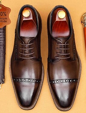 Sapatos sociais oxford marrom escuro masculinos, calçados sociais elegantes com cadarço e detalhes de tachas para banquetes, escritórios e casamentos