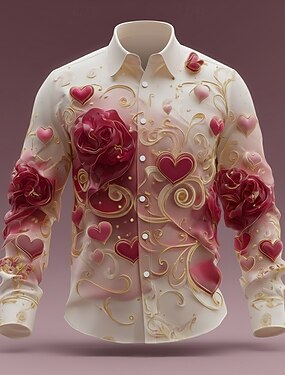 Dia dos Namorados Homens Romântico Estampa floral Flores Camisa Social camisa de botão Manga Longa Moda Casual Presente Feriado Primavera Outono Aberto para a Lateral Impressão 3D camisas de colarinho