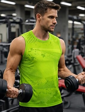 Homens Gráfico Geométrica Camisola de alças do exercício Regata de Corrida Regata para Academia Verão Sem Manga Secagem Rápida Macio Respirável Treino de Ginástica Corrida Caminhada Cooper Amarelo