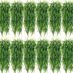 Pacote com 12 plantas artificiais suspensas de samambaia de Boston, 32 polegadas, vegetação artificial realista e sem manutenção para decoração interna/externa, casamentos, exposições, ação de graças,