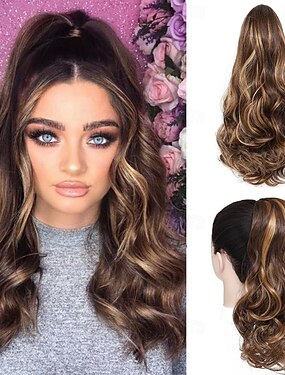 Extensão de rabo de cavalo com presilha, longa, ondulada e cacheada, 45 cm (18 polegadas), em fibra sintética, com aparência natural e volumosa.