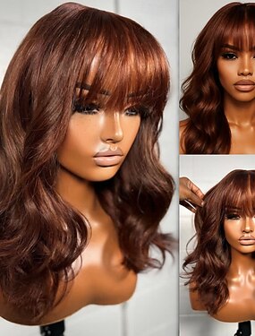Cabelo humano remy Fechamento 5x5 13x4 Lace Front Peruca Franja Lisa Com Franjas Cabelo Brasileiro Onda de Corpo Marrom Peruca 150% 180% Densidade do Cabelo com o cabelo do bebê 100% Virgem Sem cola