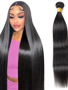 Cabelo humano brasileiro 1B # cor preta natural, liso, 1 pacote de 10 a 30 polegadas